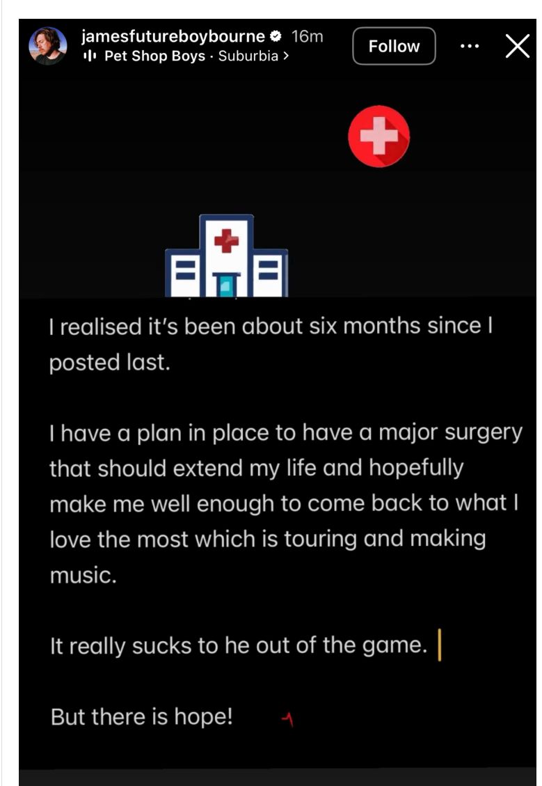BUSTED star James Bourne has revealed is having major surgery in an attempt to extend his life in a worrying health update